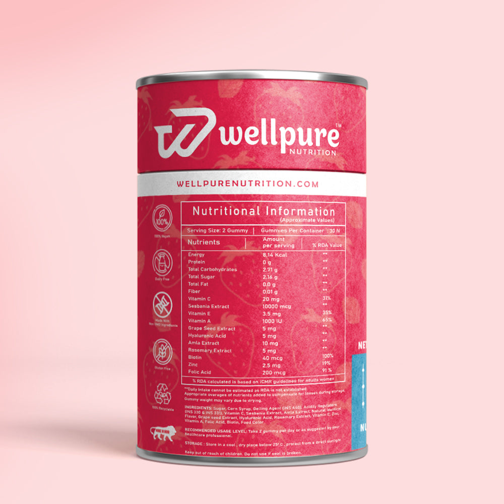 At Wellpure, we’ve crafted our Biotin 3-in-1 Gummies to deliver top-notch beauty nutrition, all in one delicious gummy.