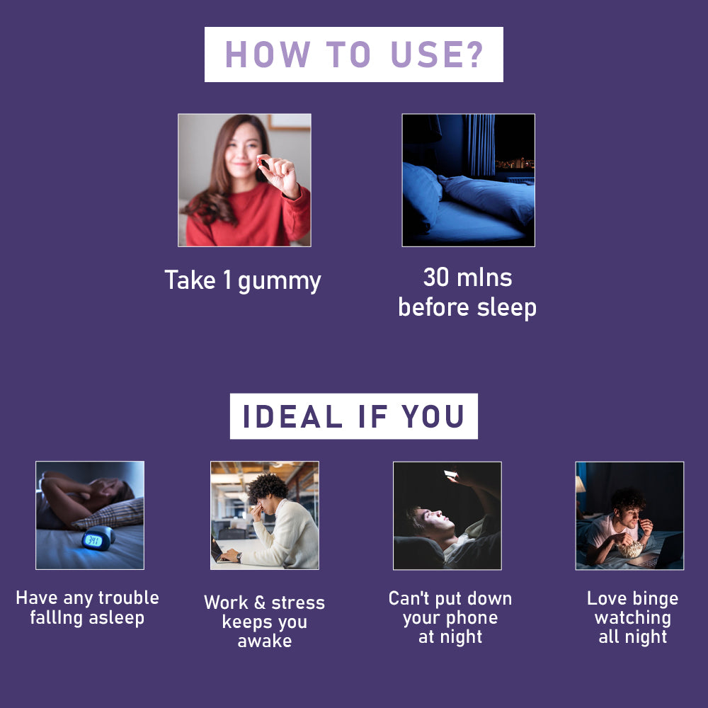 Take 1 gummy 30–45 minutes before bedtime. For adults only.